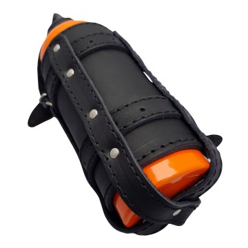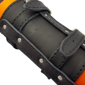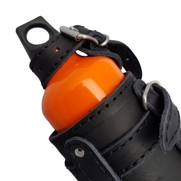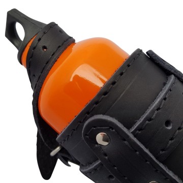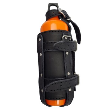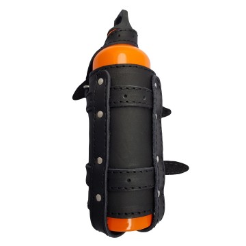 Deze leren brandstof fles houders zijn mooi afgewerkt door middel van zwarte stiksels.