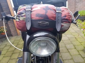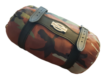 Deze lederen harnas is speciaal ontworpen voor je slaapzak of tent aan je stuur of sissybar te bevestigen.