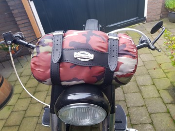 Prijs is voor lederen stuur harnas + leger print slaapzak.