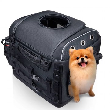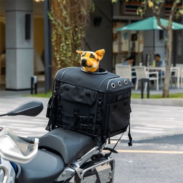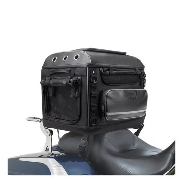 Jouw hond of kat zit veilig in de topkoffer terwijl jij niet wordt afgeleid door het gedrag van jouw huisdier.