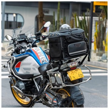De koffer kan middels de meegeleverde universele bevestigingsriemen op bijna alle achterdragers van scooters, motoren of trke's worden geïnstalleerd.