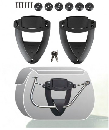 Met het Click & Lock systeem kunt u de koffers in slechts enkele seconden installeren en verwijderen, en vervolgens met een sleutel op uw motor vergrendelen. De click & Lock systeem moet u er los bijbestellen. + (€ 94,95)