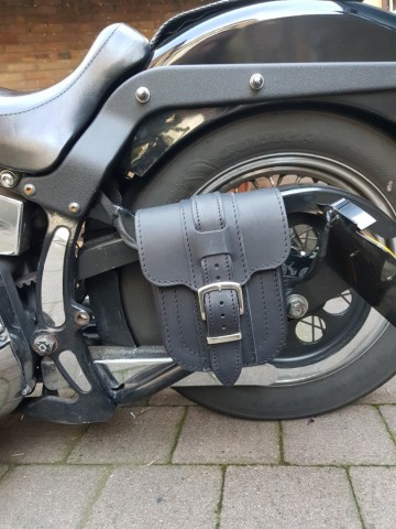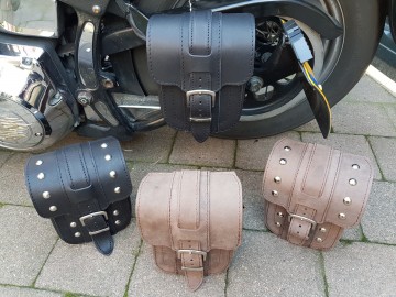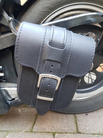 Deze tas is eenvoudig te bevestigen met twee leren riempjes (inbegrepen) voor een perfecte pasvorm. Om de vorm van de zadeltas te behouden, is de binnenkant bekleed met een hard pvc materiaal van ongeveer 2 mm dikte.