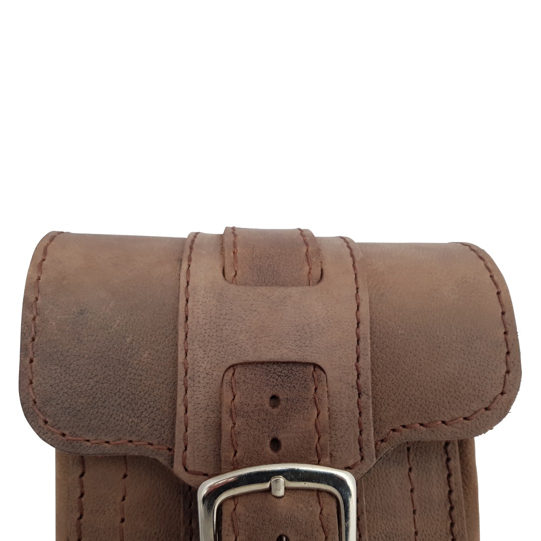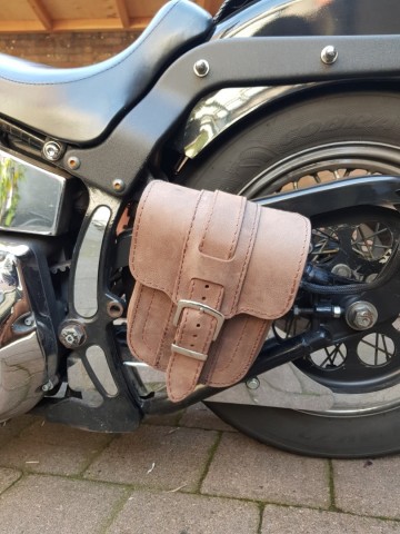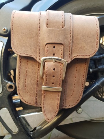 Deze tas is eenvoudig te bevestigen met twee leren riempjes (inbegrepen) voor een perfecte pasvorm. Om de vorm van de zadeltas te behouden, is de binnenkant bekleed met een hard pvc materiaal van ongeveer 2 mm dikte.