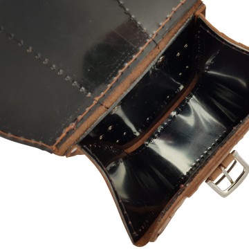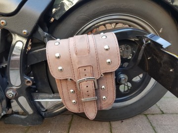 Deze tas is eenvoudig te bevestigen met twee leren riempjes (inbegrepen) voor een perfecte pasvorm. Om de vorm van de zadeltas te behouden, is de binnenkant bekleed met een hard pvc materiaal van ongeveer 2 mm dikte.