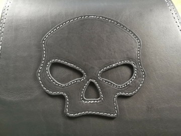 Grote Leren Solo Zijtas Skull Mat Zwart / Wit