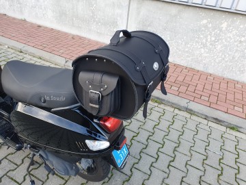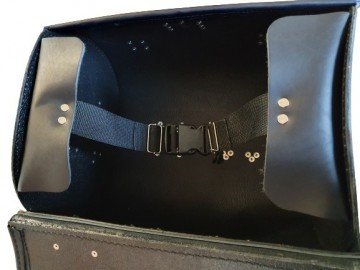 Deze Motorkoffer is makkelijk te bevestigen achter op bagagerek of achterspatbord of sissybar door middel van 4 leren riempjes.