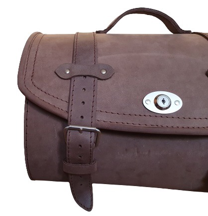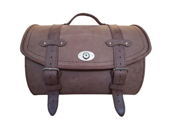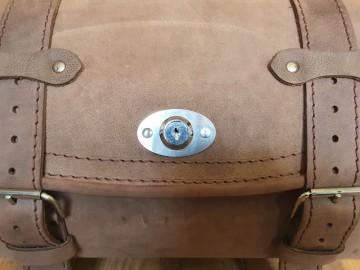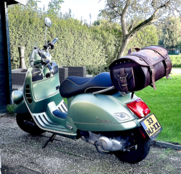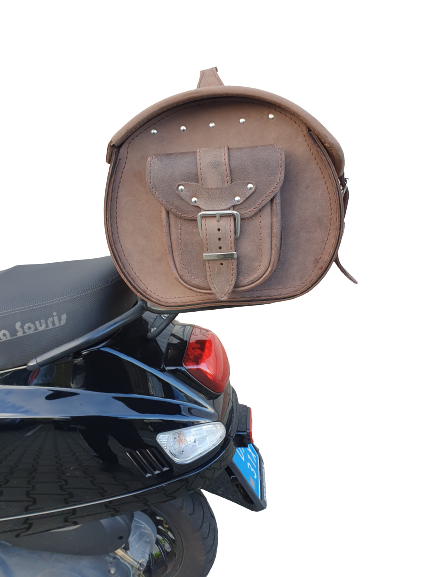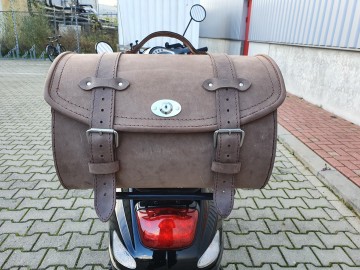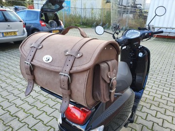 Een prachtige leren topkoffer. Deze topkoffer heeft vooral een mooie verschijning op een Vespa, motorscooter of een retroscooter.