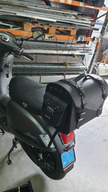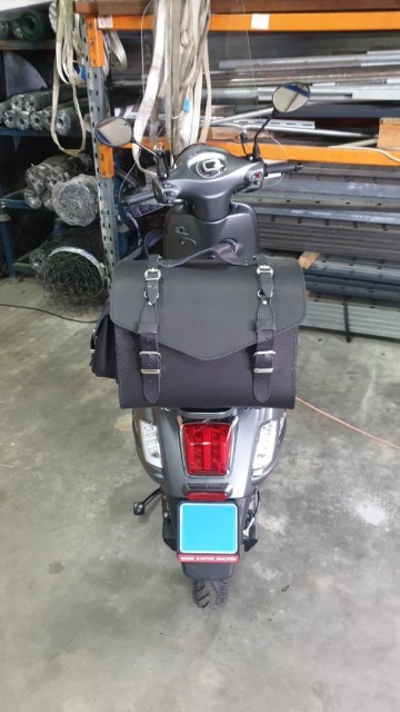 Deze Motorkoffer is makkelijk te bevestigen achter op bagagerek of achterspatbord of sissybar door middel van 4 leren riempjes.
