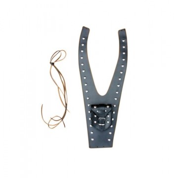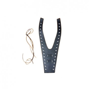 Bevestiging door middel van 2 lederen veters. (Deze worden erbij geleverd).
