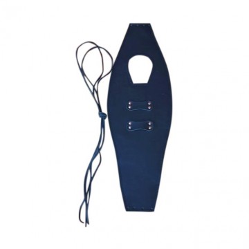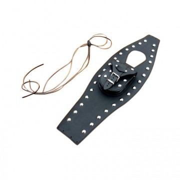 Bevestiging door middel van 2 lederen veters. (Deze worden erbij geleverd).