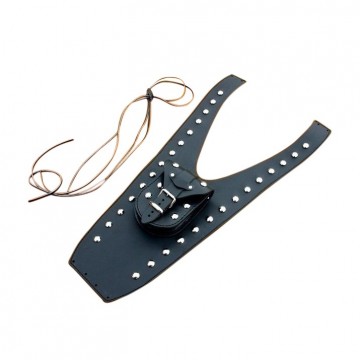 Bevestiging doormiddel van 2 lederen veters. (Deze worden erbij geleverd).
