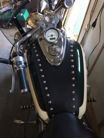 Deze tankpad kan je in verschillende kleuren leer en stiksels laten maken.