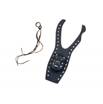 Bevestiging door middel van 2 lederen veters. (Deze worden erbij geleverd).