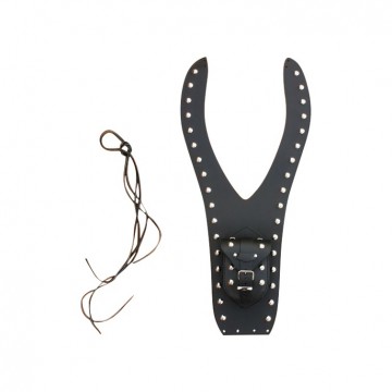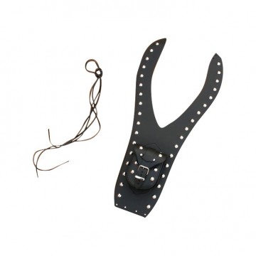 Bevestiging door middel van 2 lederen veters. (Deze worden erbij geleverd).