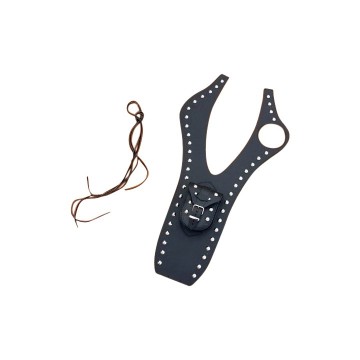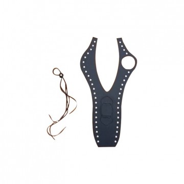 Bevestiging door middel van 2 lederen veters. (Deze worden erbij geleverd).