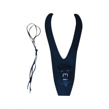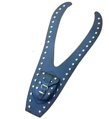 Bevestiging door middel van 2 lederen veters. (Deze worden erbij geleverd).