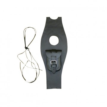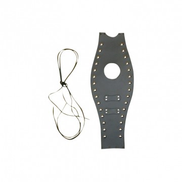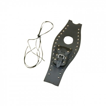 Bevestiging door middel van 2 lederen veters. (Deze worden erbij geleverd).