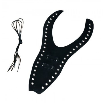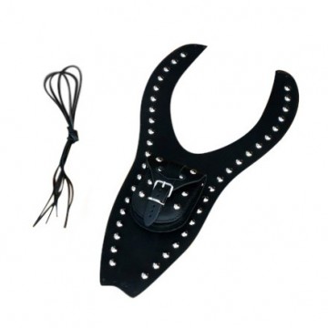 Bevestiging door middel van 2 lederen veters. (Deze worden erbij geleverd).