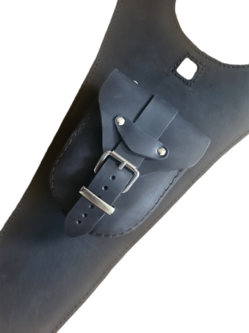 Bevestiging door middel van 2 lederen veters. (Deze worden erbij geleverd).