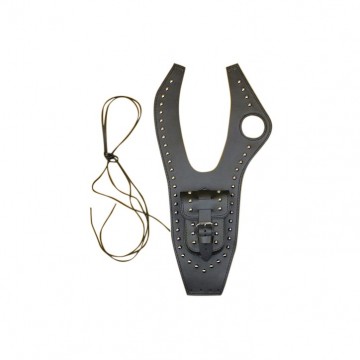 Bevestiging door middel van 2 lederen veters. (Deze worden erbij geleverd).