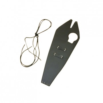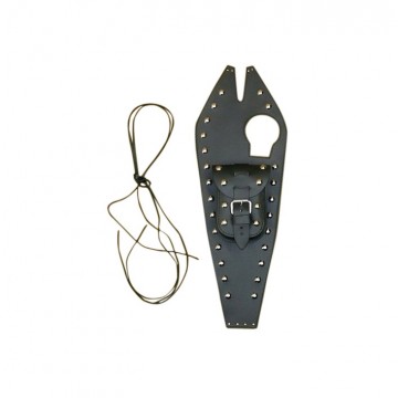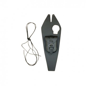 Bevestiging door middel van 2 leren veters. (Deze worden erbij geleverd).