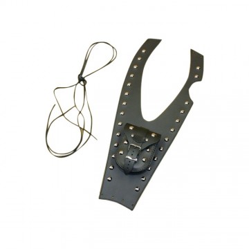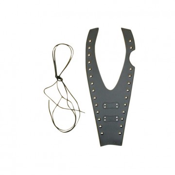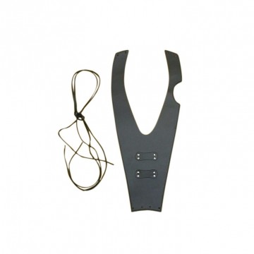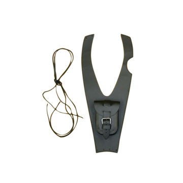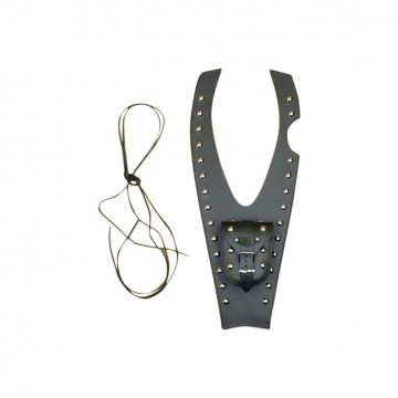 Bevestiging door middel van 2 leren veters. (Deze worden erbij geleverd).