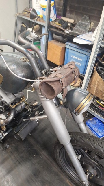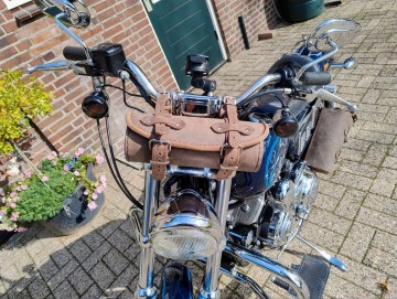 Deze mooie kleine toolrol is van top kwaliteit. Wordt bevestigd doormiddel van 2 leren riempjes. (Deze worden erbij geleverd). Passend op alle motoren en trikes