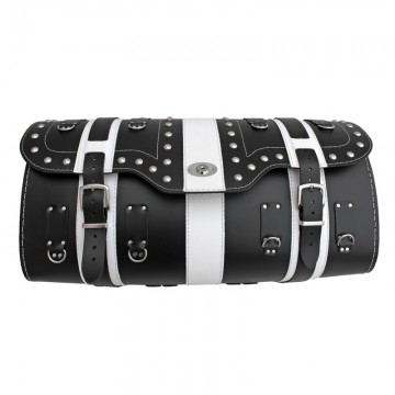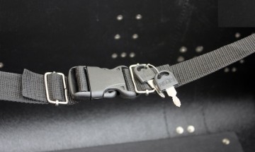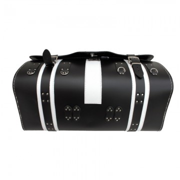 Deze Motorkoffer is makkelijk te bevestigen achter op bagagerek of achterspatbord of sissybar door middel van 4 leren riempjes.