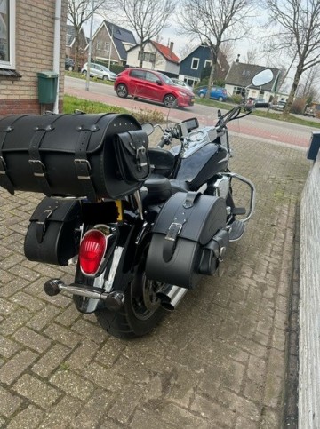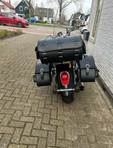 Deze Motorkoffer is makkelijk te bevestigen achter op bagagerek of achterspatbord of sissybar door middel van 5 leren riempjes.