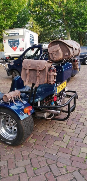 Deze Motorkoffer is makkelijk te bevestigen achter op bagagerek of achterspatbord of sissybar door middel van 4 leren riempjes.