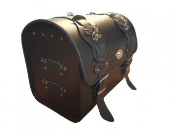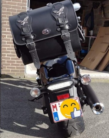 Deze Motorkoffer is makkelijk te bevestigen achter op bagagerek of achterspatbord of sissybar door middel van 4 leren riempjes.